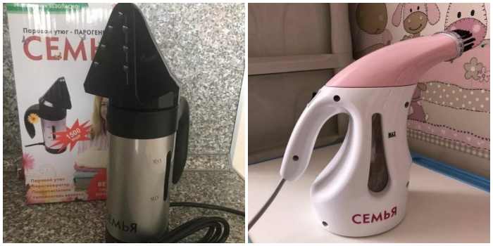 Если говорить о малогабаритных моделях, то здесь лидер рейтинга – это, безусловно, ручной отпариватель «Семья». Прибор особенно хорош для семей с маленькими детьми. Он поможет не только быстро разгладить детские вещи, но и пропарит, а значит и простерилизует, мягкие игрушки. Радует и невысокая цена – в зависимости от модели, от 800 до 2000 рублей. Но есть и минусы.