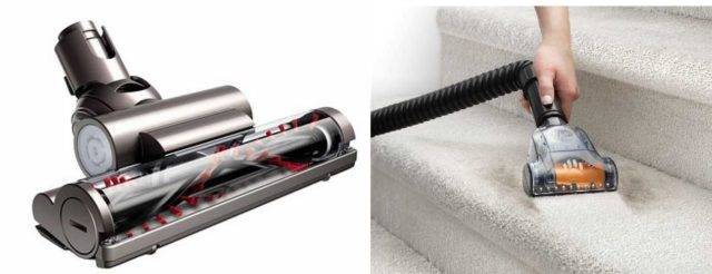 Собирать собачью или кошачью шерсть с ворсистых поверхностей — то еще удовольствие. Производители пылесосов разработали специальные турбо-щетки. Это насадка, внутри которой находится валик с разнонаправленной щетиной. Валик крутится, подхватывая шерсть, волосы, нитки. Все то, что так тяжело собирается обычными насадками. Направление и расположение щетинок у каждой фирмы свое.