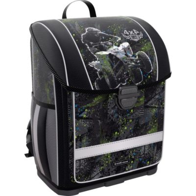 Это отличный вариант рюкзака для мальчиков, учащихся в начальных классах: вес – 950 г, вместимость – 23,5 л. Благодаря устойчивому жесткому днищу ранец надежно влагозащищен. Прочный ремень на бедрах способен снимать нагрузку со спины и плечевой области, нагрудный ремень обеспечивает комфортную посадку рюкзака. Это комплект, куда входят: удобная спортивная сумка, вместительная папка и два объемных пенала, один из которых с канцелярским наполнением. Цена на такую модель начинается от 13900 р.