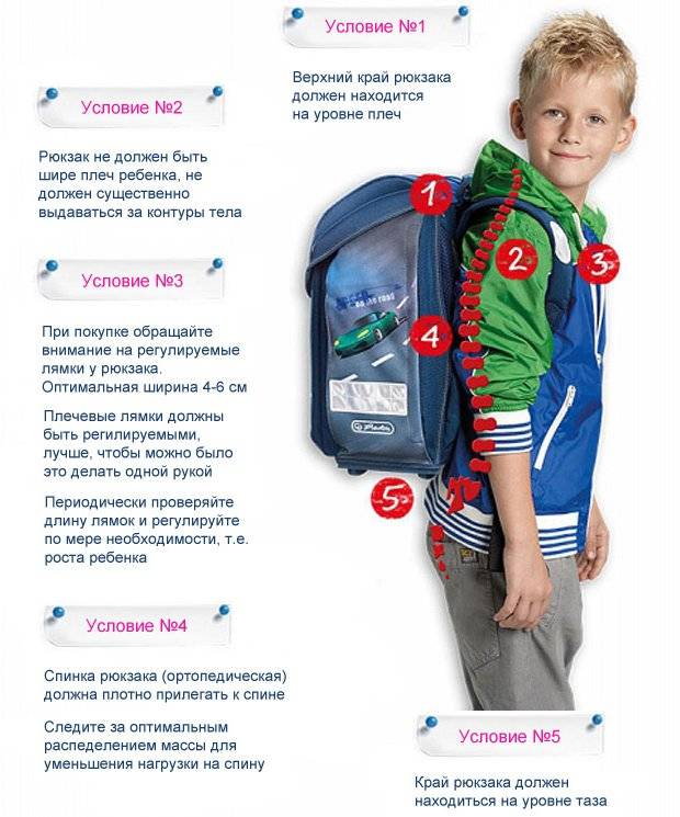 3. Ширина ранца не должна превышать ширину плеч ученика.