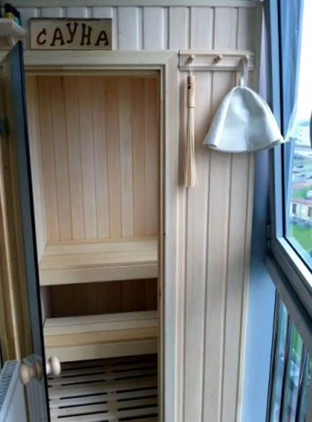 Если с узакониванием перепланировки квартиры ничего не вышло, установку можно осуществить еще и в кладовой, если убрать оттуда имеющийся хлам. Некоторые оборудуют парную на балконе, устанавливая там инфракрасные обогреватели
