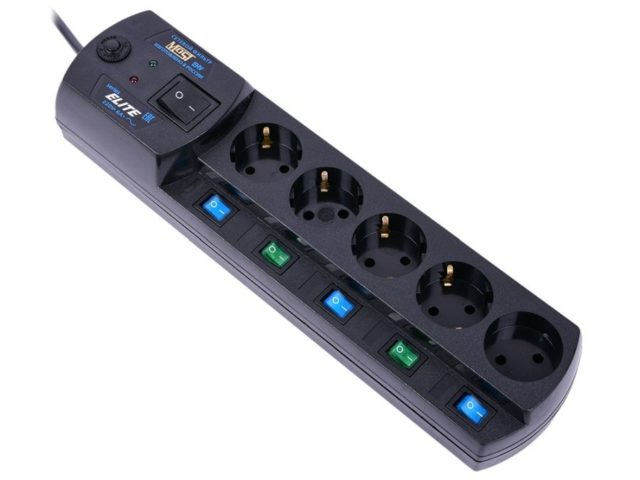 Один из самых распространенных типов – это так называемый компьютерный удлинитель или сетевой фильтр. Он имеет в корпусе встроенный выключатель, которым можно отключать питание всех розеток.