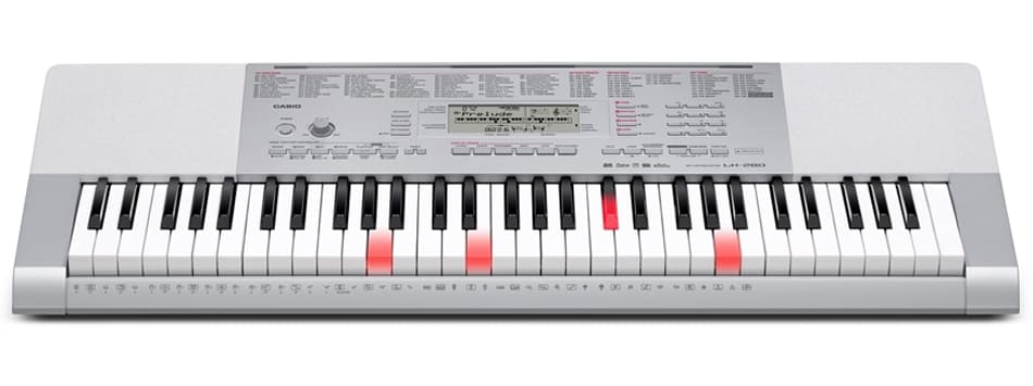 Другой достойный представитель – Casio LK-280. Это хороший вариант в качестве «обучалки» для ребенка. Помимо подсказок на дисплее, здесь есть подсветка клавиш, которая позволяет не только быстро найти нужную, но и сориентироваться по уровню нажатия на нее.
