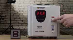 Компактное напольное устройство, отличающееся бесшумной работой и простотой эксплуатации. Работает с широким диапазоном напряжения – 140-260 В (устройство имеет погрешность в 8 процентов). Предусмотрена надежная защита бытовой техники от скачков напряжения, перегревания и короткого замыкания. Имеется цифровой дисплей, на котором отображаются все необходимые сведения. Охлаждение воздушное. Допустимо использование прибора при температуре от 0 до +40 градусов. Модель работает бесшумно, обеспечивает хорошую стабилизацию. Но стоит при этом даже дороже, чем лидер этого рейтинга.