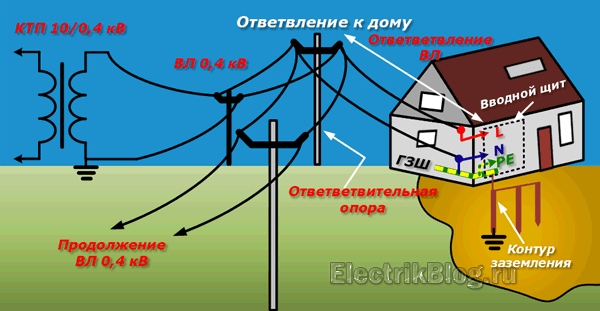 - Вариант №2 – к дому подведена трехфазная сеть на 380В