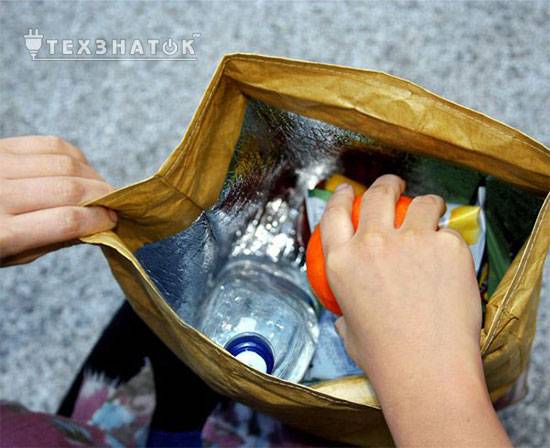 Внутреннее устройство такой термосумки очень простое. Внутри нее имеется изоляционный слой из фольги или вспененного полиуретана. Плотно закрытая такая сумка поддерживает одинаковую внутреннюю температуру в течение 2-3 часов. Эта сумка подойдет в том случае, если человек ведет активную жизнь и много времени проводит в дороге. Внешний вид может быть разным. Есть модели с удобной длинной ручкой, чтобы носить их на плече. В продаже имеются удобные рюкзаки и термобоксы с жесткой конструкцией, где в качестве изоляционного материала используется пенопласт.