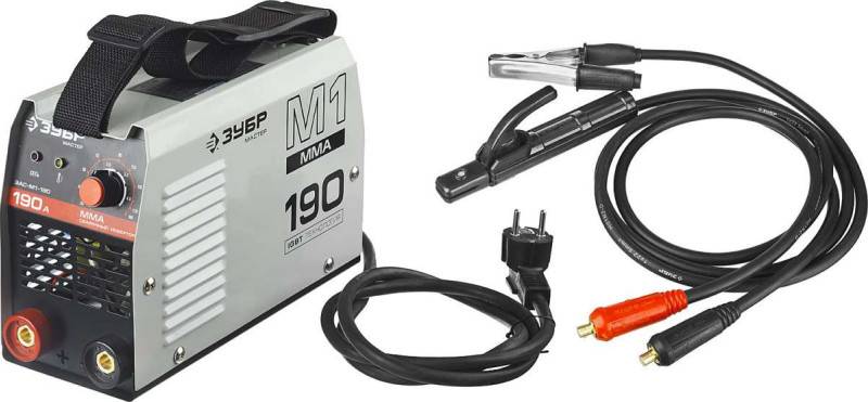 ЗУБР ЗАС-М1-190 (MMA) обладает микропроцессорным управлением, которое хорошо облегчает вес устройства, оно имеет массу 3,5 кг. Модель подходит для высотных работ. Мощность – 6,6 кВт, токовый максимум – 190 А. Несмотря на небольшие размеры, у сварочного аппарат много необходимых опций: защита от прилипания, перегревания, избыточной нагрузки, форсирование дуги, Hotstart. В комплектации идут провода с электрододержателем, зажимом на массу, ремешок для транспортировки.