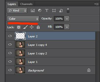 Эта, пожалуй, одна из самых популярных манипуляций в Adobe Photoshop, выполняется очень просто. Нам потребуется создать новый чистый слой (Ctrl+Shift+N) и выбрать для него режим наложения Color.
