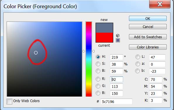 Теперь надо выбрать тот цвет, в который мы будем перекрашивать наши глаза. Чаще всего требуется не изменять цвет радикально, а лишь слегка скорректировать или усилить оттенок (например, сделать серые глаза голубыми). В этих случаях можно выбрать пипетку (Eyedropper Tool (I)) и взять исходный цвет глаза в качестве отправного. Затем в окне Color Picker меняем цвет на более насыщенный: