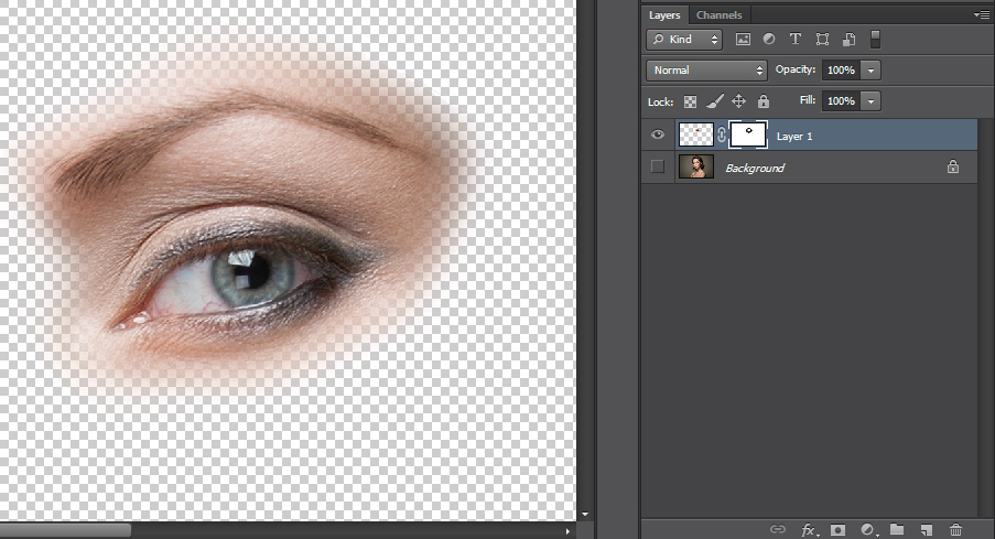 Проверить отсутствие жёстких границ можно, выключив отображение исходного слоя. При этом слой с увеличенным глазом будет выглядеть так: