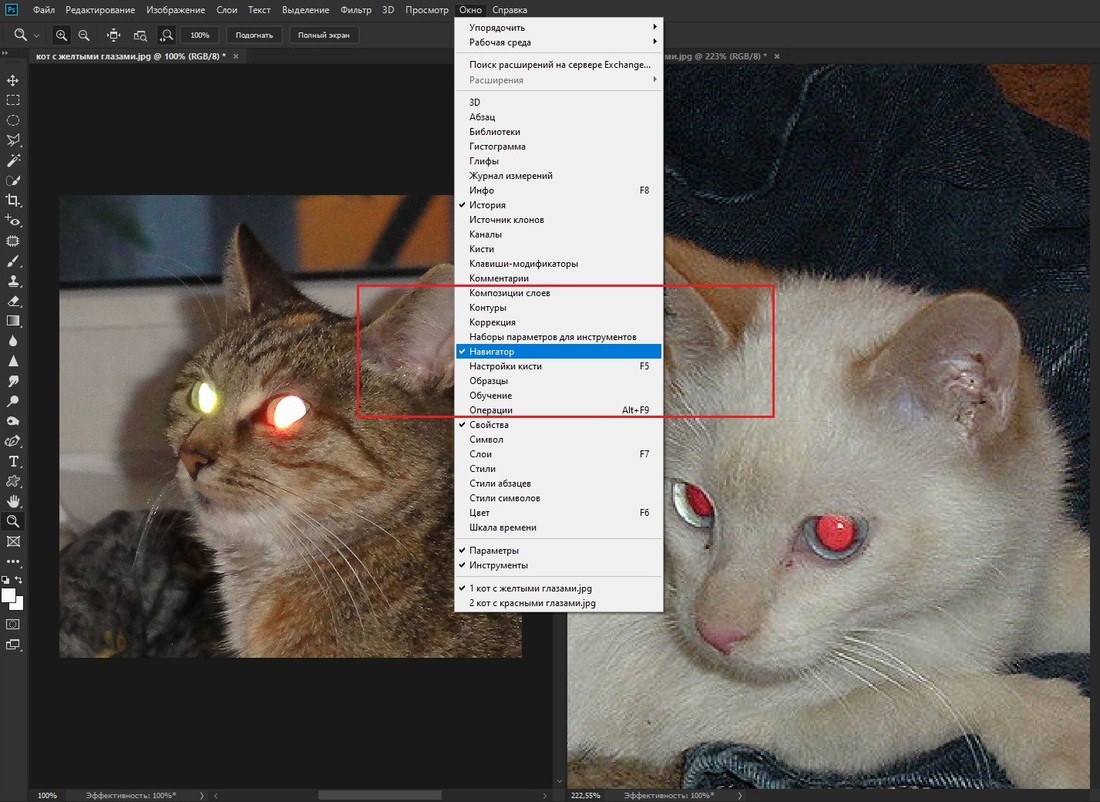 Данный способ можно использовать, если на фото глаза человека или животного освещены равномерно, и они действительно красные.