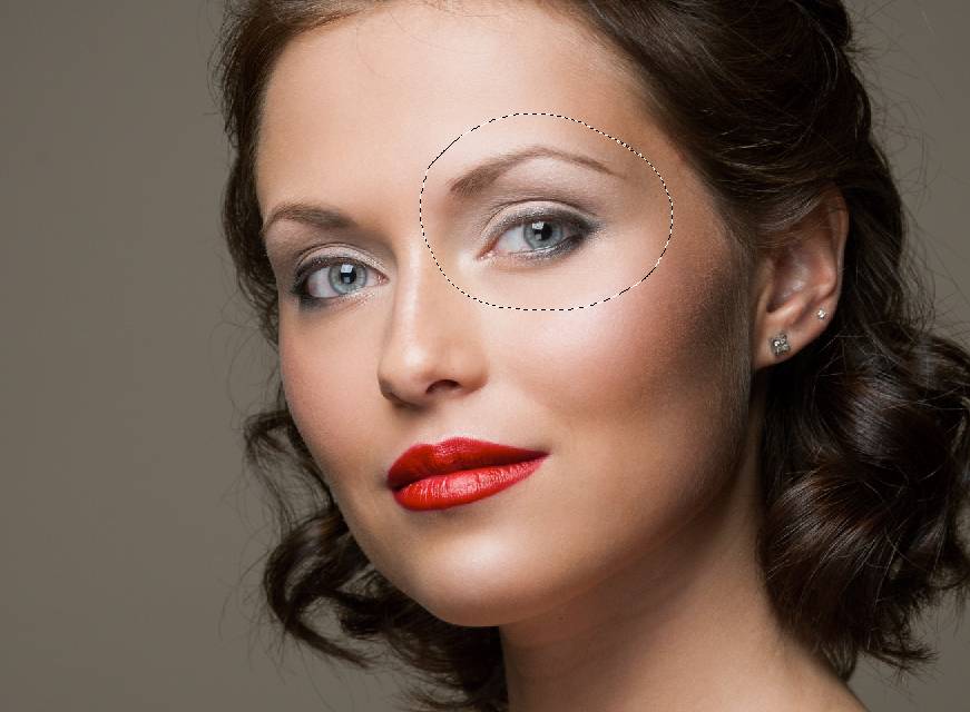 Глаза мы будем увеличивать по одному. Для начала выделим глаз с помощью инструмента Lasso Tool (L). Лучше взять область с запасом и обязательно включить в выделение бровь!