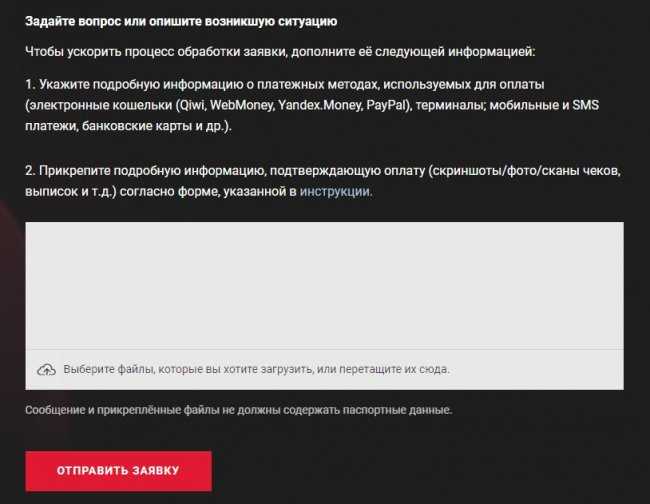 - Следом идет форма для развернутого комментария. Здесь постарайтесь максимально точно указать проблему с приведением подтверждений. Можно прикрепить изображения (например, скриншоты с ошибкой).