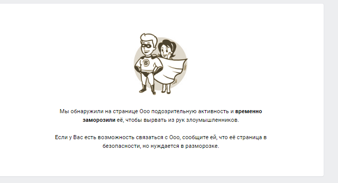 Сама блокировка страниц предназначена для защиты от взлома и подозрительной активности, так как хакеры, взломавшие вашу страницу, начнут незамедлительно действовать и рассылать спам, либо же попытаются украсть ваши данные. Но не всегда у владельца есть возможность быть онлайн и предотвратить это действие сменой пароля, так что для мгновенного противодействия мошенникам.