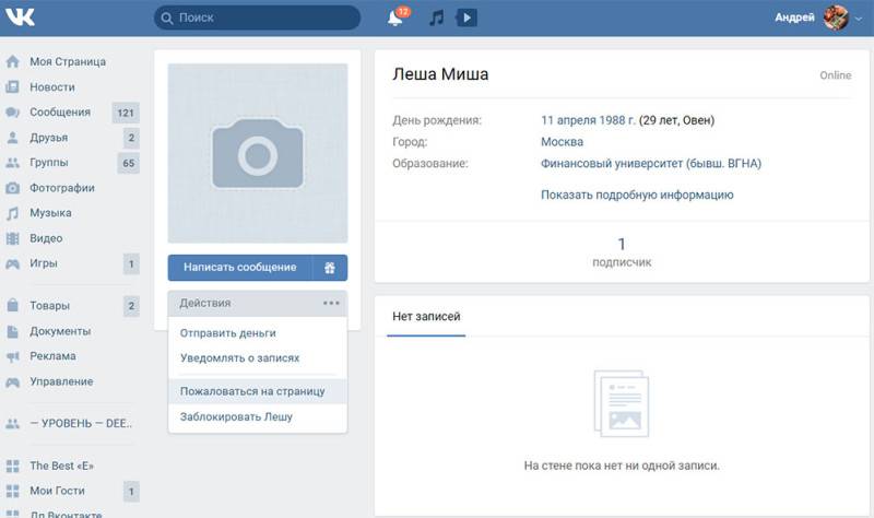 - Открыть страничку юзера, которого хочется заблокировать.