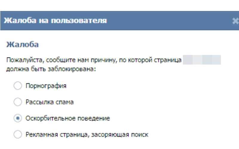 - Оскорбительное поведение. Если нужно заблокировать свою страницу, стоит рассылать подобные сообщения не знакомым пользователям, и в комментариях ставить не приятные тексты.