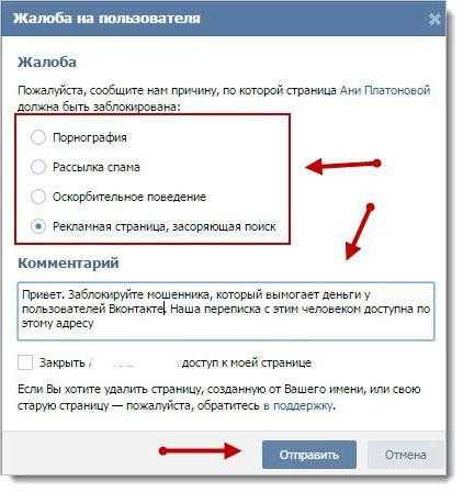 Также, желательно поставить галочку над нижней строчкой – Закрыть «Васе Пупкину» доступ к моей странице и жмём «Отправить». Данный запрос поступит к модераторам ВК.