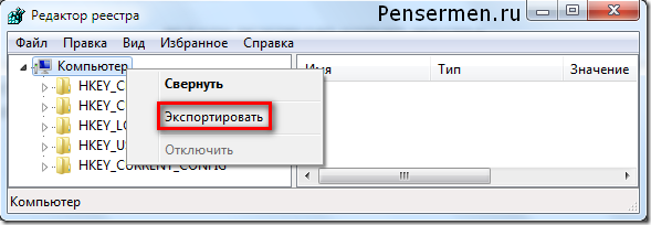 Как открыть редактор реестра Windows 7 Вы уже знаете. Открываем и если нужно сделать копию всего реестра целиком, кликаем правой кнопочкой мыши на “Компьютер” и выбираем “Экспортировать”. Вот так: