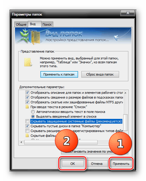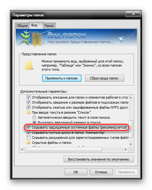 - Не лишним будет убрать галочку с пункта «Скрывать защищенные системные файлы».