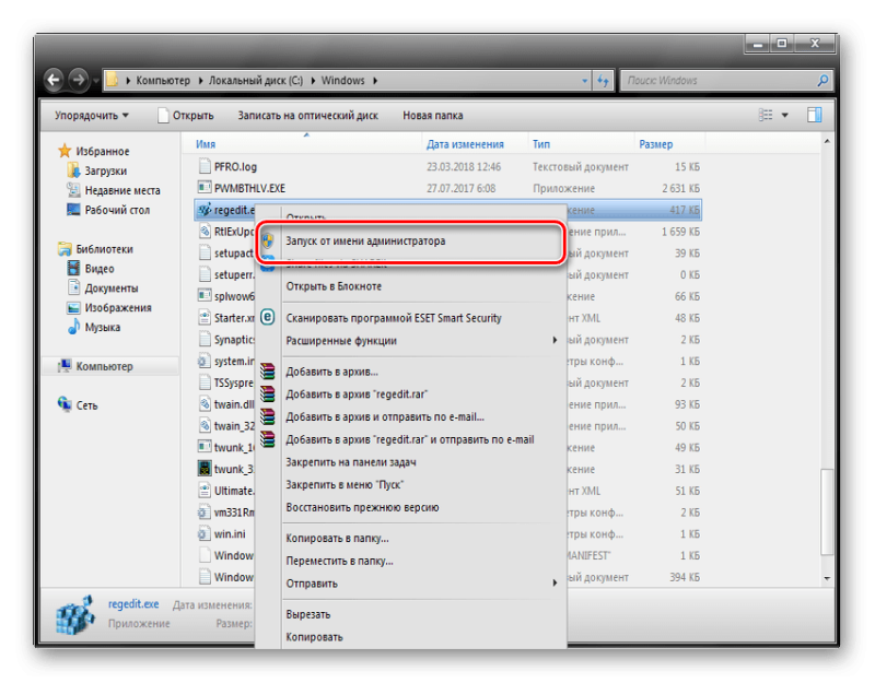 Как открыть редактор реестра Windows 7 при помощи встроенного файлового менеджера?