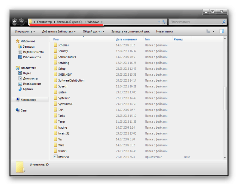 Теперь «Проводник» без проблем сможет отображать системные каталоги и их содержимое. Можно приступать к поиску исполняемого файла редактора реестра.