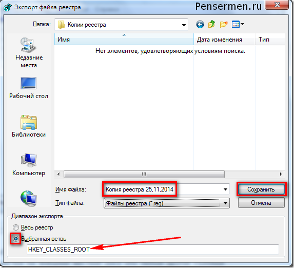 Обратите внимание, чтобы кнопка «Весь реестр» была активирована. Нажимаете «Сохранить»