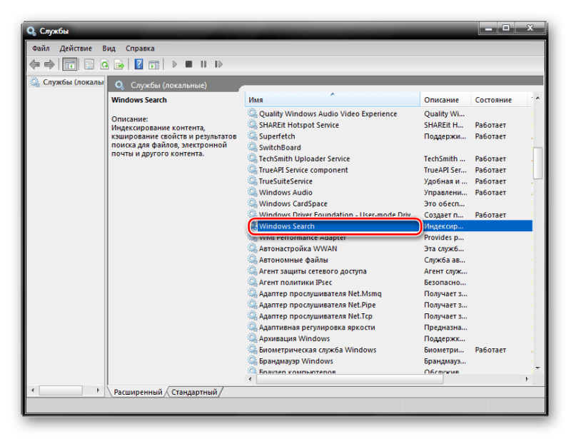 - В списке системных служб нужно найдите «Windows Search» и кликните по ней два раза.
