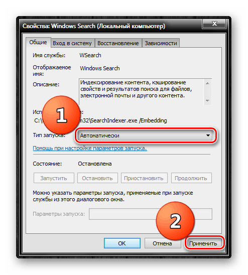 - В окне настройки службы следует выберите в строке «Тип запуска» параметр «Автоматически» и нажать кнопку «Применить».