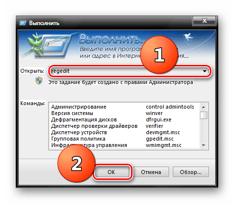 - В форме ввода напечатайте regedit. Кликните OK или Энтер.