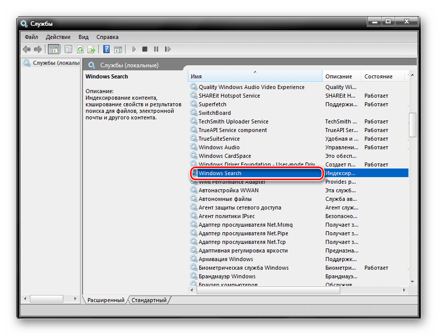 - В списке системных служб нужно найдите «Windows Search» и кликните по ней два раза.