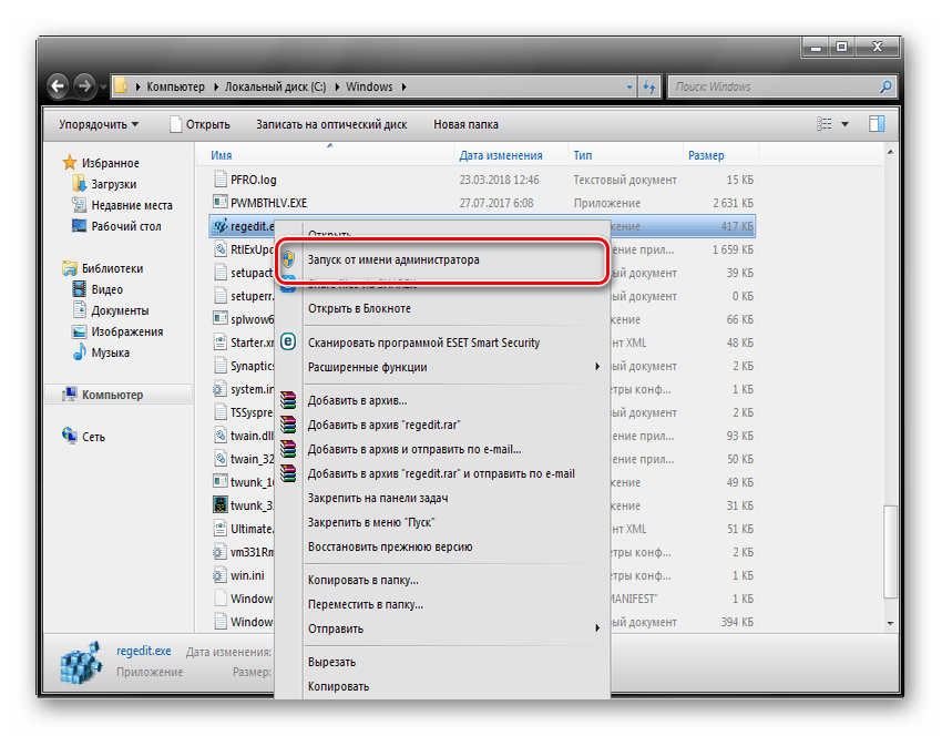Как открыть редактор реестра Windows 7 при помощи встроенного файлового менеджера?
