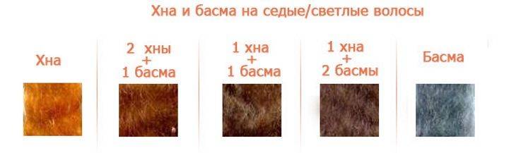 Рекомендуемые соотношения (хна:басма) выглядят так: