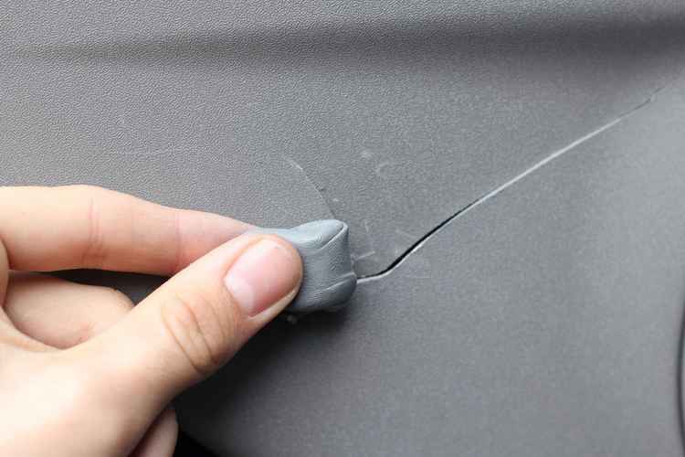 Если же эпоксидного грунта не окажется, то подойдет автопластилин. Необходимо отщипнуть кусочек, скатать из него шарик и залепить им скол. Чтобы пластилин не бросался в глаза, при его покупке надо подобрать минимально контрастный цвет.