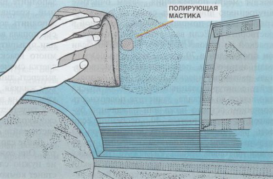 Затем производится полировка сколов краски пастой. Делать это нужно аккуратно. Не требуется ничего закрашивать.