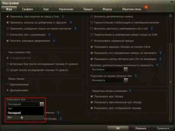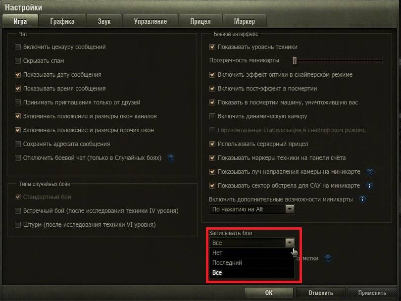Прежде всего, нужно убедиться, что бои world of tanks записываются, а для этого в настройках клиента игры нужно выбрать запись всех боев: