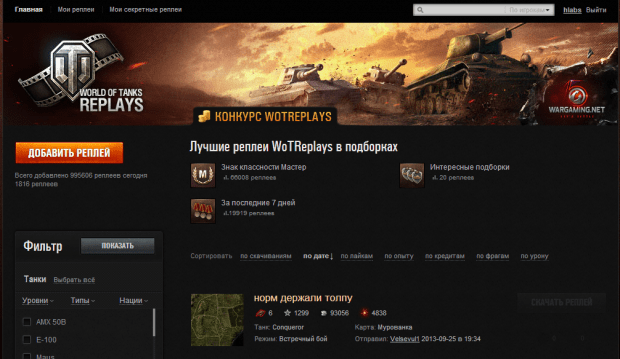 Проект wotreplays создан для загрузки собственных реплеев или просмотра боёв других игроков
