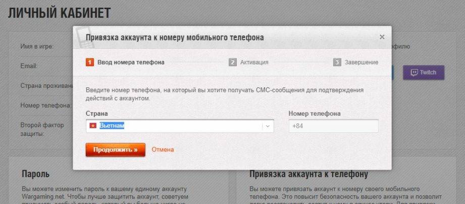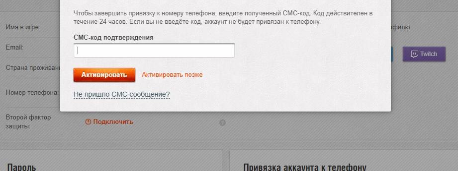 Поздравляем, номер мобильного привязан к аккаунту World of Tanks, а ваш кошелек пополнился еще сотней кусков золота!