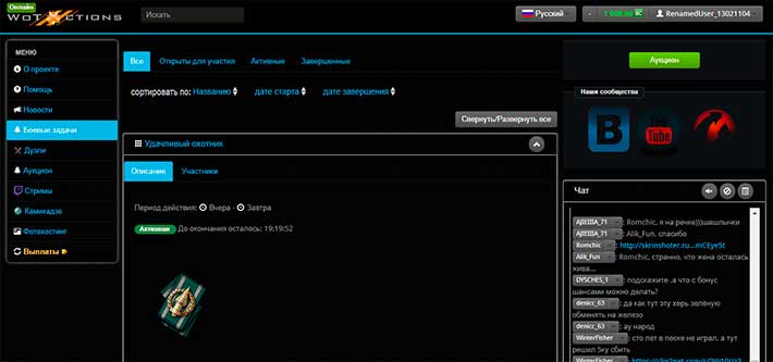 com– сайт с задачами для World of Tanks. В этом сервисе также можно не сомневаться, потому что отзывы о нем присутствуют на официальном форуме игры. Данный сервис публикует доказательства выплат, на которых видны ники получателей. При желании всегда можно связаться с этими людьми и спросить о достоверности информации на сайте. Выполняя боевые задачи и занимая призовые места, которых, к слову, здесь всегда около 300-400, можно накапливать валюту. А дальше уже эту валюту можно вывести на свой аккаунт World of Tanks.