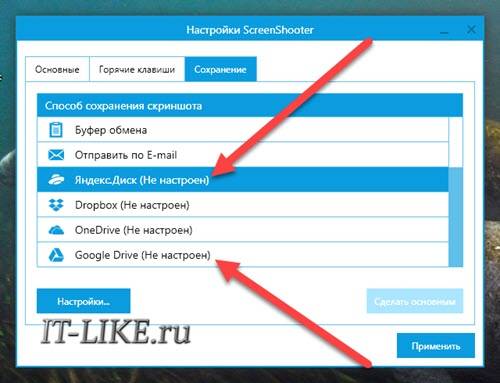 Думаю, что изначально выбраны именно такие сочетания для тех случаев, когда НЕТ кнопки PrtScrn на клавиатуре. Чтобы готовым скриншотом можно было поделиться, нужно настроить облако, на выбор: Яндекс Диск, Google Drive, Dropbox и Microsoft OneDrive: