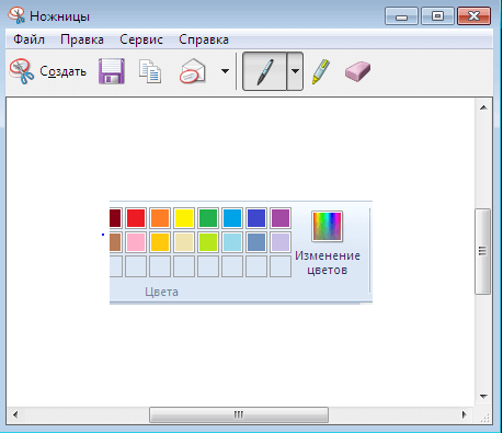 После запуска программы «Ножницы» вам будет предложено выбрать область экрана, с которой нужно сделать снимок, это можно сделать с помощью мышки. После того как нужна область экрана выделена она будет скопирована в окно, где вы сможете провести базовое редактирование полученного снимка.