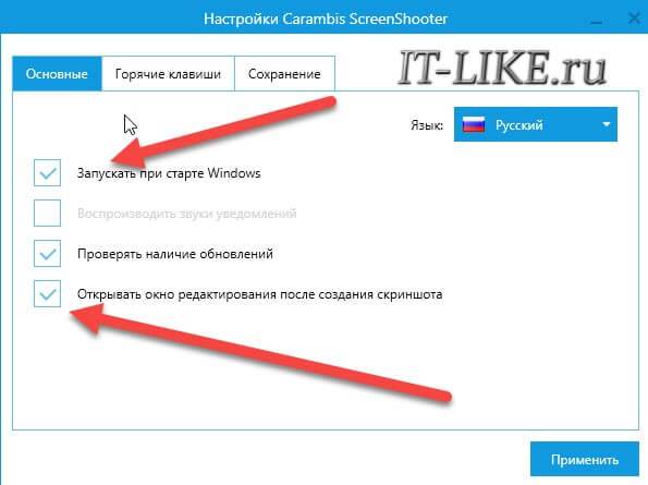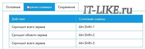 Видим стандартные опции автозапуска и также можно отключить окно редактора после создания скриншота. В этом случае мы сразу получаем готовую ссылку. На вкладке «Горячие клавиши» можно переопределить кнопки по умолчанию: