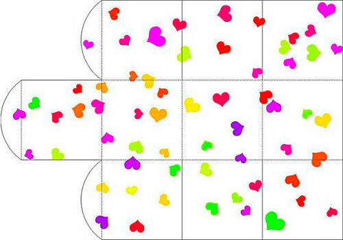 Упаковать подарок малого размера удастся и без коробки. Достаточно купить двухсторонний цветной картон и сделать из него пирамидку с любым числом граней. При продумывании развёртки пирамидки не забываем о прибавках на склейку. Можно эти места просто загнуть под прямым углом, а в верхнем углу каждого треугольника пробить отверстие, куда пропустить ленточку и завязать её. Адресату придётся развязать бантик и разложить пирамидку, чтобы достать содержимое. У склеенной пирамидки одну грань нужно оставить свободной: она послужит крышечкой. Закрепить крышечку получится как ленточкой, так и просто клапанами из прозрачного скотча.