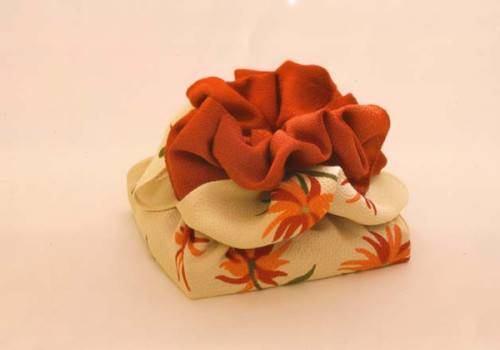 Как упаковать платок в подарок, чтобы ему обрадовались с первого взгляда? Примените предыдущую технику – платком обвяжите муляж или второстепенный презент – шарик надувной, пустую коробочку. Основание будет служить формой для завязки.