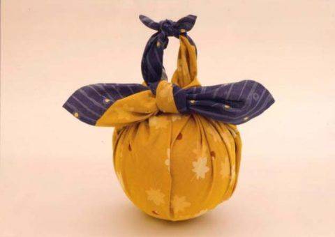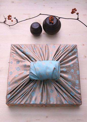 Как упаковать платок в подарок, чтобы ему обрадовались с первого взгляда? Примените предыдущую технику – платком обвяжите муляж или второстепенный презент – шарик надувной, пустую коробочку. Основание будет служить формой для завязки.