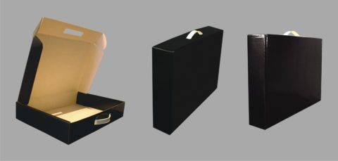 Другой вариант, как упаковать мужской подарок в виде картонного чемодана. Подобные сложения в раскрытом виде можно найти в интернете, сложив потом по ребрам целую картонку.
