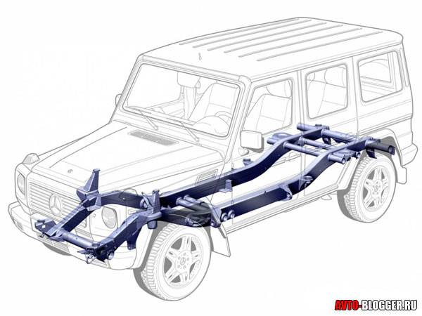 - Наличие рамной конструкции. Именно рама это черта настоящего внедорожника. И уже на нее вешается остальной кузов, делается это для жесткости, для выдерживания больших нагрузок (скажем на кручение), для перевозки больших грузов и т.д. Но рамная конструкция не такая комфортная в передвижении, поэтому сейчас могут применять несущую конструкцию кузова (это также не редкость)