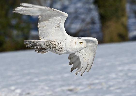 острые и загнутые, они помогают ей быстро хватать жертву и удерживать ее. Полет совы почти бесшумен, это происходит благодаря особому строению перьев. Первые наружные перья пилообразно и бахромчато зазубрены. Третье и четвертое перо совы длиннее остальных. Хвост закругленный и обрезанный, а рулевые перья загнуты. Размах крыльев совы составляет около 142-200 сантиметров. Эти птицы летают очень быстро: скорость совы в полете достигает 80 км/ч.