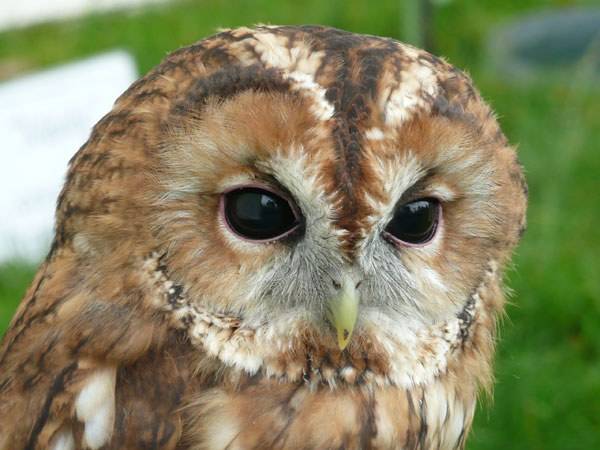Самый отличительный, выделяющий сову признак — ее крупная морда и голова с большими круглыми глазами. Клюв совы изогнутый, короткий, с ноздрями, расположенными у самого его основания.