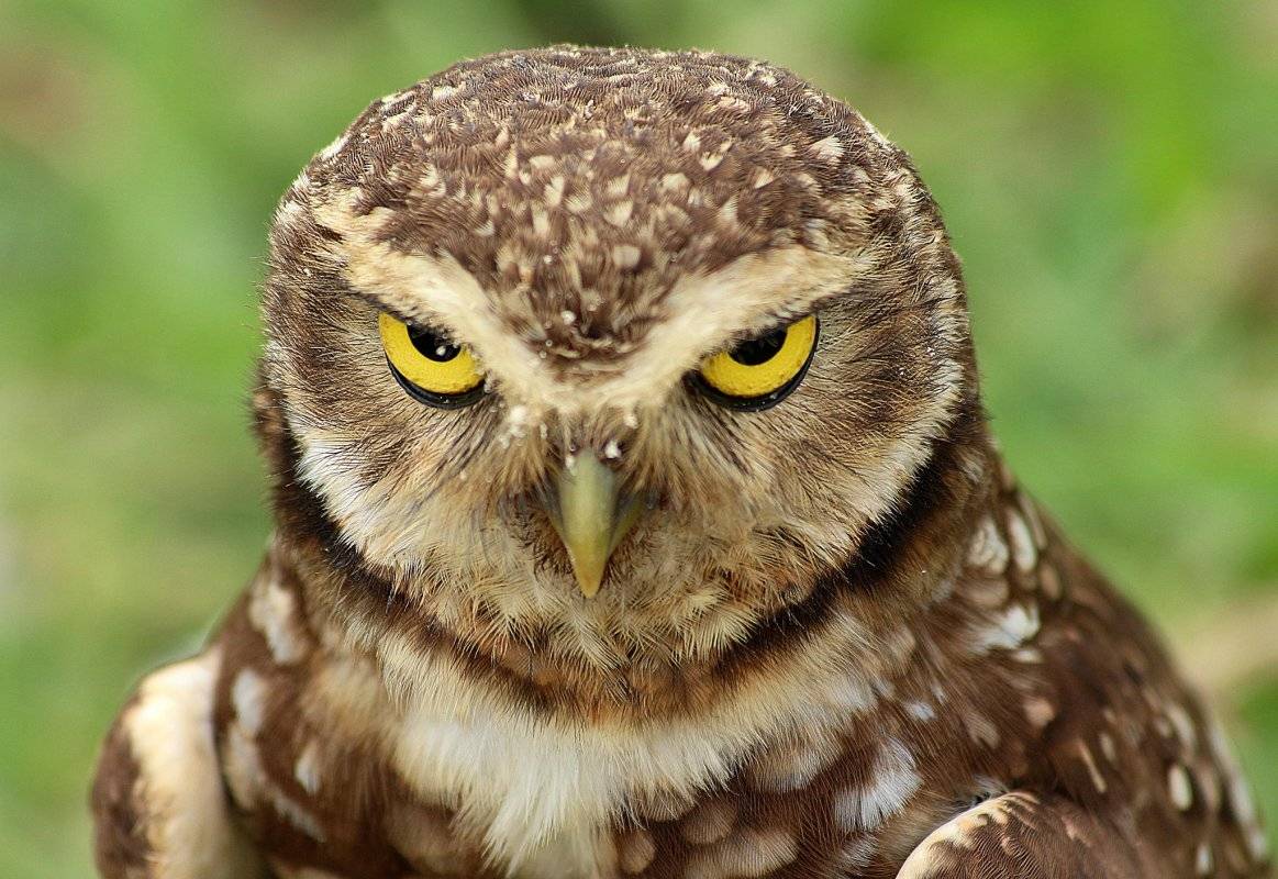 Самый отличительный, выделяющий сову признак — ее крупная морда и голова с большими круглыми глазами. Клюв совы изогнутый, короткий, с ноздрями, расположенными у самого его основания.