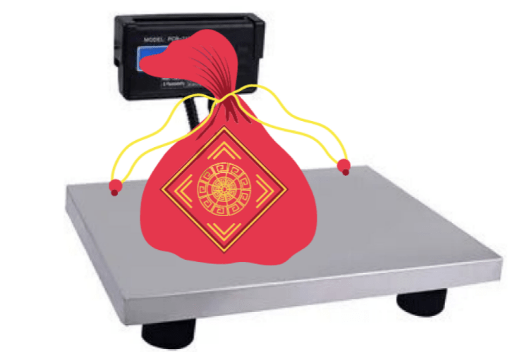 Вон там как раз стоит нераспечатанный мешок с конфетами, можешь его поставить на весы.